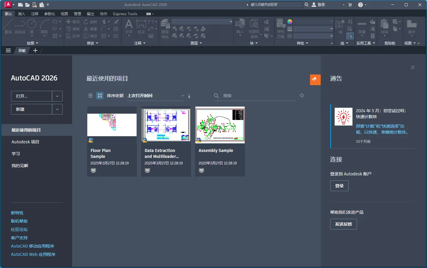 了解此版本的 AutoCAD 2026 中的新增功能。有关技术详细信息,请参见 发行说明。