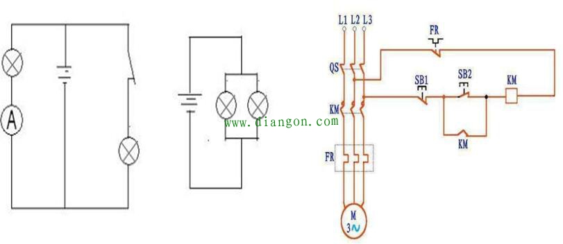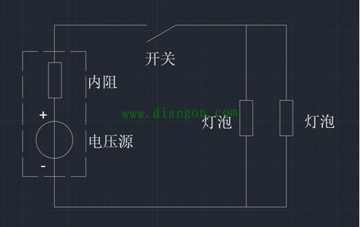 比如,在电源频率不高情况下,各种电阻器、白炽灯和电饭煲都可以用“电阻元件”来表示。对电感线圈,其内阻很小,可以忽略不计,电感线圈可以等效为一个“电感元件”来表示。对于各种电容器可以用“电容元件”来表示。对这些干电池、蓄电池等实际的直流电源可以用“理想电压源”和“电阻”串联来表示。如果按上述方法上图中实际电路图用各种理想元件表示构成了电路模型,然后电路模型用电气图形符号表示,这样就得到了电路图。