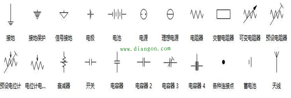 总结一下,实际电路是由实际电路元件构成,如果将实际电气元件进行理想化可以得到理想电路元件,理想电路元件构成的电路称为电路模型,如果电路模型用电气图形符号表示时就得到了电路图。下图是常见电路元件的图形符号。