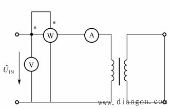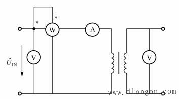 理论上空载试验即可以在高压侧进行,也可以在低压侧进行,但为了安全起见,一般是在低压侧进行。单相变压器空载试验接线图如图1所示。假定试验对象为一台升压变压器,则原边绕组为低压侧。在原边绕组施加额定电压