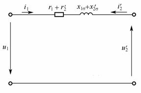 就很大,励磁支路可认为处于开路状态,从电源所吸收的功率也可以认为是全部消耗在绕组电阻上。此时,等效电路如图4所示。可以由以下公式