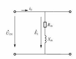 对三相变压器而言,公式中的各量都要采用相值,即一相的损耗.相电压和相电流。所测励磁阻抗是否需要归算,视要求而定。例如一台降压变压器,副边绕组属于低压侧,试验在副边绕组进行,测的参数便属于副边绕组参数,如要求得到归算到原边绕组的参数,便须在计算值的基础上乘以变比的平方。需要指出的是,励磁阻抗与铁心的饱和程度有关,电压图2 空载试验等效电路图