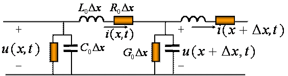 ② 整个传输线可以看成是由许许多多微小的线元△x 级联而成;