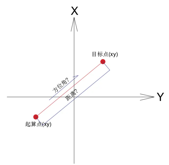 坐标反算可以看作是坐标正算的逆运算,其核心需求是:已知起算点和目标点的坐标,反向计算出两点之间的直线距离,以及起算点到目标点的坐标方位角。同样,结合图示能更清晰地理解计算逻辑。