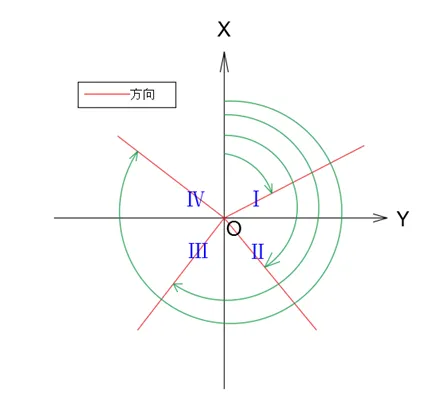 这里需要特别注意一种特殊情况:若x2 = x1(即两点在同一条竖直线上),上述基础公式无法直接使用,此时方位角F直接取90°,后续的判断逻辑与上述一致。