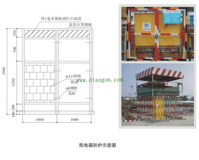 2、分配电箱设置在现场并进行防护,道路通畅地方。