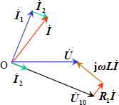 在分析阻抗(导纳)串、并联电路时,可以利用相关的电压和电流相量在复平面上组成电路的相量图。