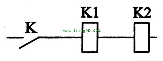 在交流控制电路中不能串联2个电器的线圈,如图3所示。即使外加电压是2个线圈的额定电压之和,也是不允许的。因为每个线圈上所分配到的电压与线圈阻抗成正比,2个电器动作是有先有后,不可能同时吸合。https://www.dgdqw.com/m415961.html假如交流接触器K2先吸合,由于K2的磁路闭合,线圈电感显著增加,从而使另一个接触器K1线圈电压达不到动作电压。故2个电器需要同时动作时其线圈应并联连接。