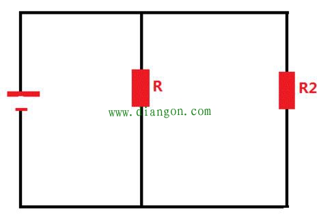 而并联的特点和串联有点相反,并联电路中的电压处处相等,总电流等于各支路电流之和。生活中我们的电压是220V,因为家里的电路是并联的,所以不管我们在那个插座上量都是220V。既然并联中总电流等于各支路电流之和,要是我们在各支线上都加一个电阻,是不是可以起到分流的作用呢。比如上图中总电流不变,R假设为一个灯泡,电流是1A,R2的电流为2安,如果我们在电路中任何一个点加一个电阻,而总电流等于各支路电流之和,各个元件的电流是不是变小的,就好比二个人分9块钱,一个人得四毛五,三个人分的话每个人只得到三毛钱。我们因此得出当一电阻和另一元器件如灯泡在电路中处于并联时,电阻两端电压和灯泡两端电压相同,而流过电阻的电流与流过灯泡的电流之和等于流过电阻和灯泡的总电流,所以电阻的第二个作用就是分流。