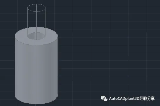 然后运行布尔运算的差集,把大圆柱体中的小圆柱体截去