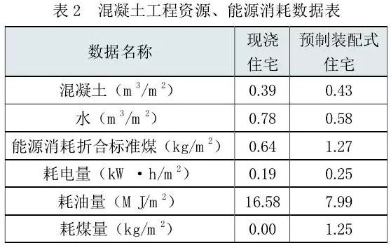 资源消耗包括预制构件生产和施工现场混凝土的消耗量;水资源消耗量包括现浇混凝土和预制构件的养护用水量以及施工机具的清洗用水量。
