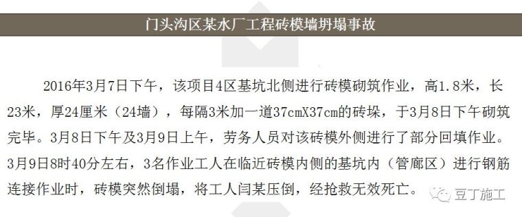 砖模墙未达到强度就进行回填作业;未按照方案施工,方案要求管廊区作业要在砖模墙施工完成3天后进行。