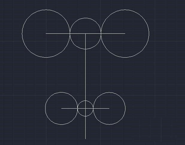 6.然后在小圆圆心画一条垂直于垂线的线段,在直线两端画两个圆,效果图如下。