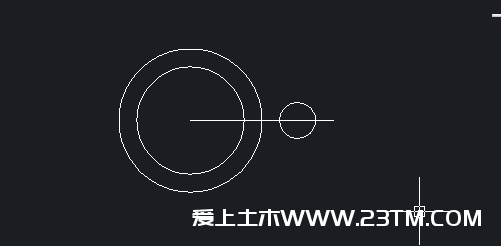 4、 选择【绘图】-【圆】命令,在距离圆心150处绘制一个半径为25的圆,命令窗口显示操作如下