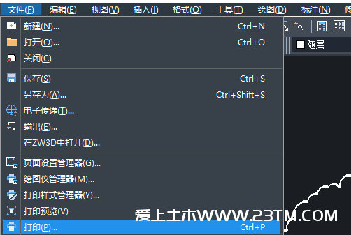 2、点击界面菜单栏上的“文件”-“打印”按钮,或者点击CTRL+P的组合键,打开打印设置的对话框